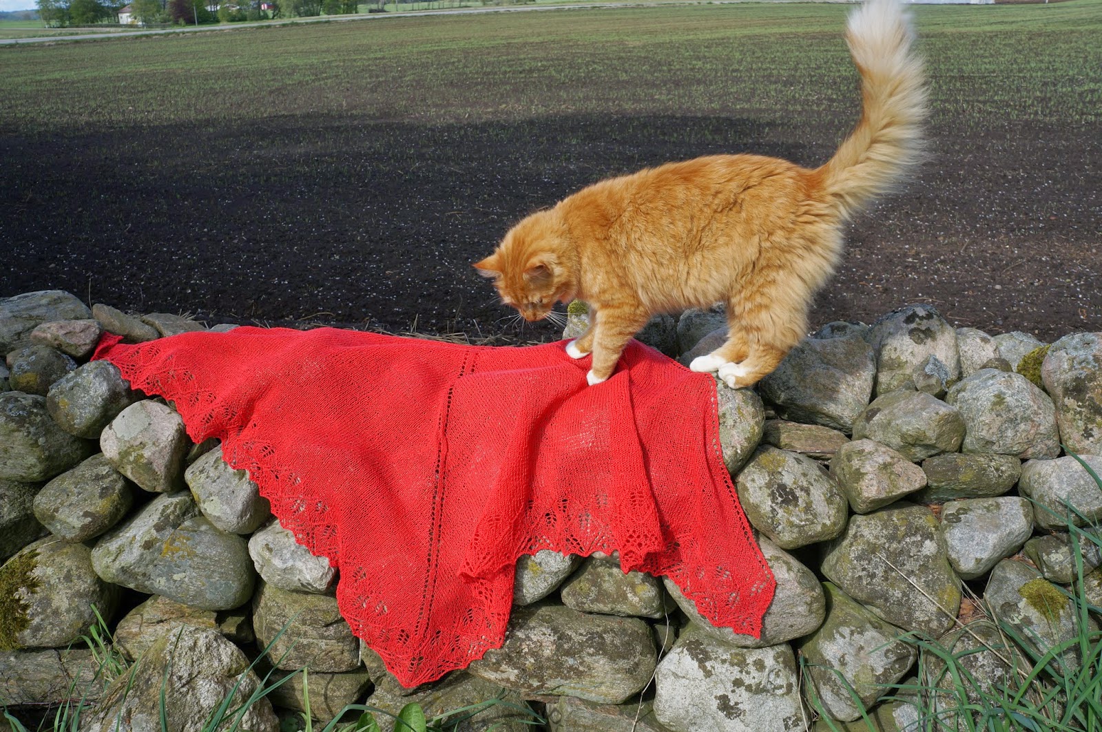 Rossi tycker matte är smart som lägger en filt på de hårda stenarna...materialet kunde vara mjukare förståss. Men jag tycker om sjalen den är jättesnygg! Kitty the knitter